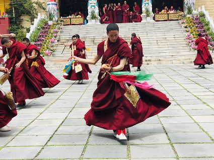 為紀念釋迦牟尼佛的誕辰(浴佛)日,康定群眾每年農(nóng)歷四月八日都要舉行隆重盛大的紀念活動,稱“四月八”轉(zhuǎn)山會,南無寺的跳神活動就是其中之一。