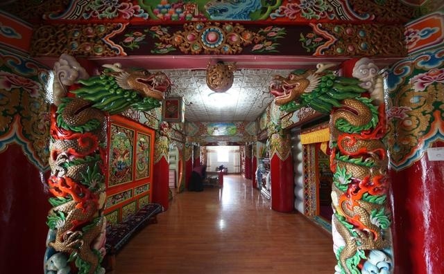 道孚民居室內(nèi)精雕細(xì)鏤,描金繪彩,每一個圖案或圖畫就是一個吉祥物或一個傳說。民居客廳陳設(shè)豪華,富麗堂皇,極顯主人的富有;經(jīng)堂供奉佛像,酥油燈長明,是家中的清靜之地;臥室多用箱式或椅式藏床,陳設(shè)溫馨而別具風(fēng)情。