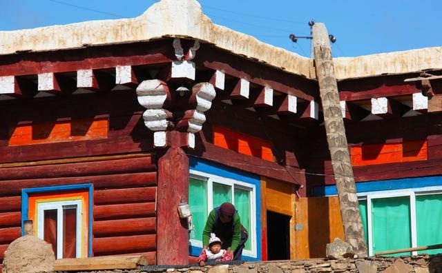民居的基礎(chǔ)多為長方形,二樓呈L型、凹型或回型。建筑的內(nèi)層結(jié)構(gòu)均以木材料為唯一的建筑材料。整座房屋用“棒柯”、“棒勒”裝修成主人或客人的臥室、儲藏室、經(jīng)堂、客廳(有的分設(shè)漢式和藏式兩廳)、廚房、走廊、陽臺、廁所。陽臺外圍墻上均建小型熏煙臺,屋頂有頂幡塔。頂蓋用樺樹皮或硬雜木條墊底,再鋪“阿嘎土”而成,日曬雨淋絕不漏水,經(jīng)久耐用。屋架門窗外表裸露部分,多以油漆或自制有色土染色,做到防腐防蛀美觀大方。一般而言,道孚民居的大框架,費不了多少工時。當(dāng)建房的材料備齊后,主人就請喇嘛打卦,擇一良辰吉日動工。