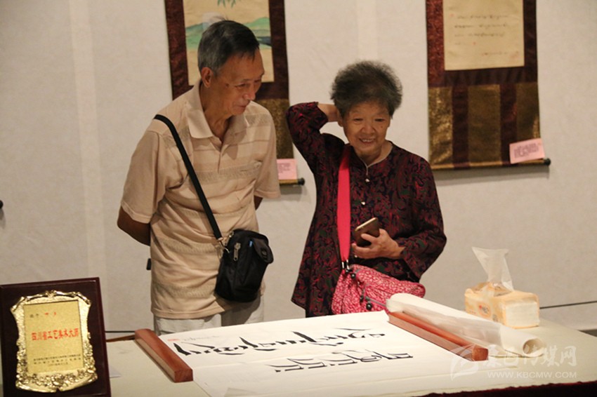 這幾天,一個(gè)十歲的外省小女孩觸動(dòng)了呷多的心靈。“她在我面前來來回回很久,我以為她只是好奇看看,結(jié)果卻讓我驚訝萬分。”讓呷多想不到地是,小女孩竟然是個(gè)“藏文書法迷”,她曾到過西藏旅游,那里的美景讓她難忘不已,那里與藏文化有關(guān)的一切更讓她迷戀眷念。如今,在展館內(nèi)看到呷多寫書法,小女孩就被“定住”了。