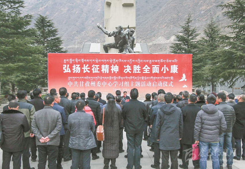 本網(wǎng)訊(記者 楊杰 肖宵 袁飛 文/圖)13日,按照州委統(tǒng)一部署,“弘揚(yáng)長征精神、決勝全面小康”中共甘孜州委中心學(xué)習(xí)組主題活動在瀘定紅軍長征紀(jì)念館啟動。州委中心學(xué)習(xí)組54名領(lǐng)導(dǎo)干部在重溫入黨誓詞后,踏上赴成都、眉山、雅安、阿壩四市州學(xué)習(xí)考察之路。本次主題活動在考察學(xué)習(xí)后還將啟動“思想大解放、能力大提升、工作大見效”討論活動和“能力素質(zhì)提升工程”,旨在弘揚(yáng)長征精神,決勝全面小康,深化“兩學(xué)一做”學(xué)習(xí)教育,動員全州黨員干部“做合格黨員、當(dāng)干事先鋒”。州委書記劉成鳴出席啟動儀式并講話,州委副書記、州長肖友才主持儀式。州人大常委會主任李康、州政協(xié)主席向秋出席啟動儀式。