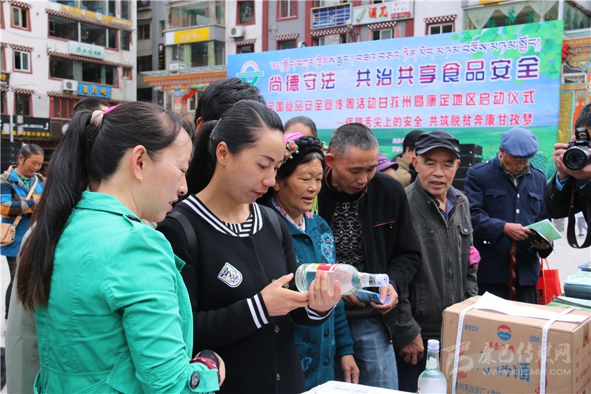 啟動儀式后,在康定情歌廣場上,來自州食安委和康定市食安相關(guān)成員單位通過現(xiàn)場咨詢、板塊展示、張貼海報標語、發(fā)放資料等方式,為前來關(guān)注食品安全的市民們發(fā)放和講解相關(guān)問題。在現(xiàn)場,記者看到廣大市民關(guān)注最多的是假冒偽劣食品,對于如何識別,現(xiàn)場工作人員都一一進行了耐心細致地講解。