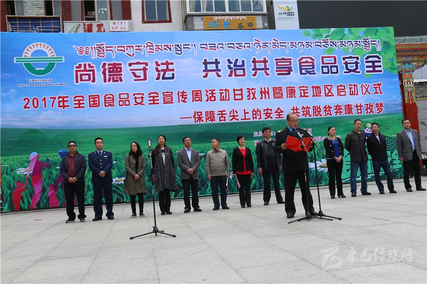 本網(wǎng)訊(記者 宋志勇 文/圖)6月29日,由州人民政府主辦的“2017年全國食品安全宣傳周活動”暨康定地區(qū)啟動儀式在康定舉行,目的是進一步普及安全法律法規(guī)和基本知識,提高公眾的食品安全意識和自我保護能力,進一步強化食品生產(chǎn)經(jīng)營者的法律意識、責任意識、誠信意識,進一步強化食品安全“政府負總責、監(jiān)管部門各司其責、食品生產(chǎn)經(jīng)營者是第一責任人”的責任,為構(gòu)建食品安全長效機制營造良好的氛圍。