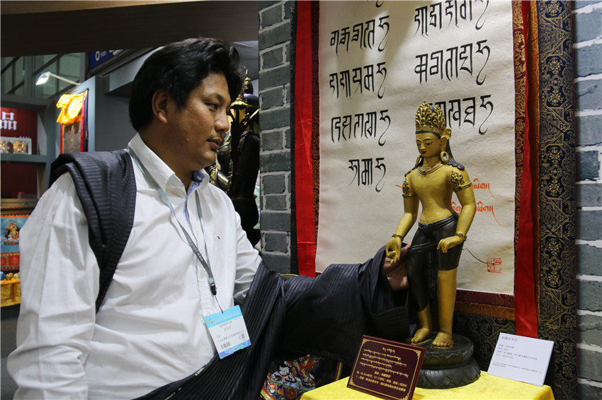 “三天來(lái),市民了解工藝品的多,購(gòu)買(mǎi)的不是很多,但也有采購(gòu)意向協(xié)議的?!比斩鄬?duì)記者說(shuō),作為獨(dú)具特色的藏族非物質(zhì)文化遺產(chǎn),為搶救這一特殊工藝技術(shù),我們公司在州委、州政府和縣委、縣政府以及州縣兩級(jí)文化部門(mén)的關(guān)心支持下,從2000年開(kāi)始恢復(fù)董察花色青銅的加工工藝,開(kāi)發(fā)了上百種精神文化類(lèi)產(chǎn)品、生活使用類(lèi)產(chǎn)品、美飾擺設(shè)類(lèi)產(chǎn)品以及演奏樂(lè)器類(lèi)產(chǎn)品。