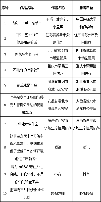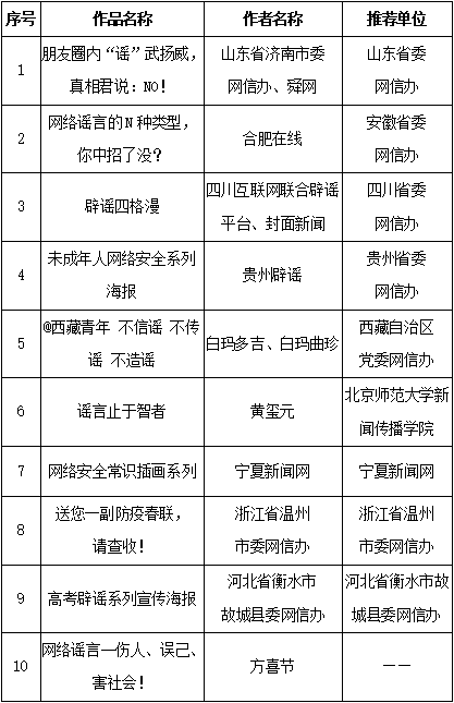 附:第五屆中國互聯(lián)網(wǎng)辟謠優(yōu)秀作品獲獎(jiǎng)名單