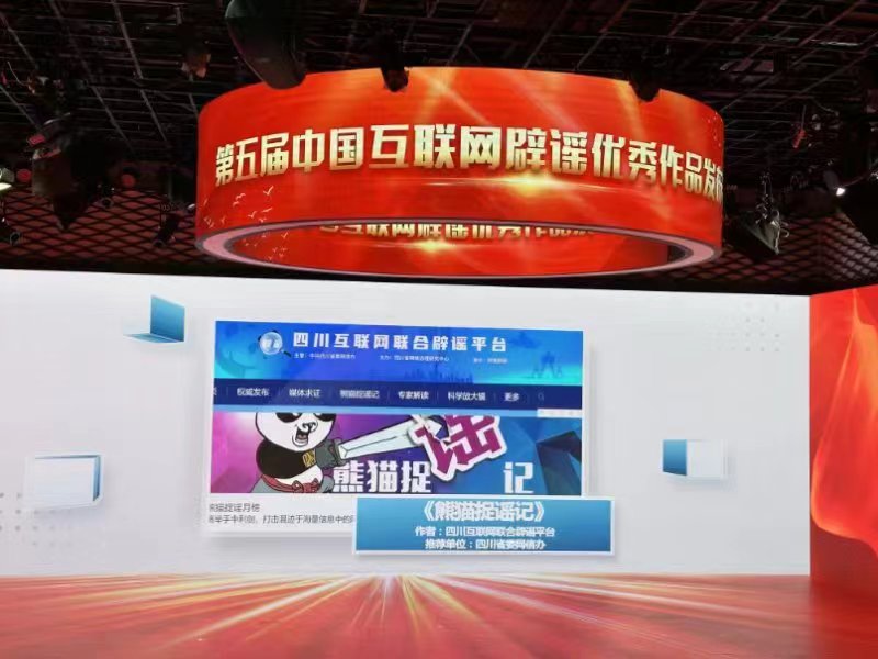 其中,由四川互聯(lián)網(wǎng)聯(lián)合辟謠平臺(tái)制作的《熊貓捉謠記》(點(diǎn)擊查看作品)獲得網(wǎng)絡(luò)辟謠版塊組織策劃類獎(jiǎng)項(xiàng)。
