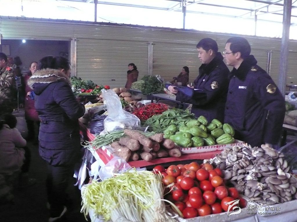 執(zhí)法人員檢查農(nóng)貿(mào)市場。