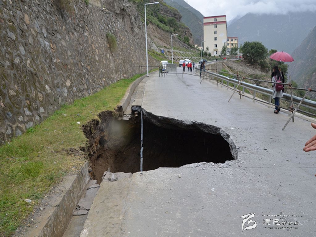 本網(wǎng)訊 (李麗瓊) 今日上午9時(shí)許,國電一名清潔工在清掃路面時(shí)發(fā)現(xiàn),康定市孔玉鄉(xiāng)阿斗溝和寸達(dá)兩村的通村路面一段發(fā)生地陷并形成深坑。得知情況后,該鄉(xiāng)政府立即組織人員到現(xiàn)場查看險(xiǎn)情。在現(xiàn)場,公路水泥路面下方的路基部分下陷形成了直徑約8、9米和不可預(yù)計(jì)高度的深坑。該鄉(xiāng)立即銜接猴子巖國電公司采取警示標(biāo)牌、隔離帶的設(shè)立工作,同時(shí)與企業(yè)協(xié)商迅速開展排險(xiǎn)工作。目前,當(dāng)?shù)卣呀?jīng)介入處理,并已逐級(jí)上報(bào)相關(guān)部門。