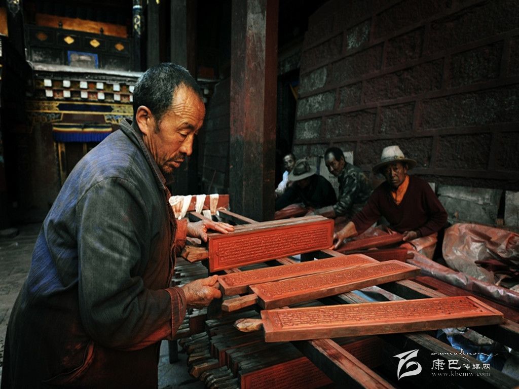 而經(jīng)版則是以生長在海拔3000米以上的紅樺木為原材料雕刻,“這種木材韌性好、防腐。”楊勝介紹,制經(jīng)版前,紅樺木還要先經(jīng)微火烤,脫去水分,再在糞堆中漚制數(shù)月,然后取出水煮、烘干、刨平,才能用來制版雕刻。而刻版的工匠要求有較好的藏文和繪畫基礎(chǔ),以保證刻準、刻好。經(jīng)版刻好之后,還需經(jīng)過12次嚴格審校,再放入酥油中浸泡一天,曬干才算完成。
