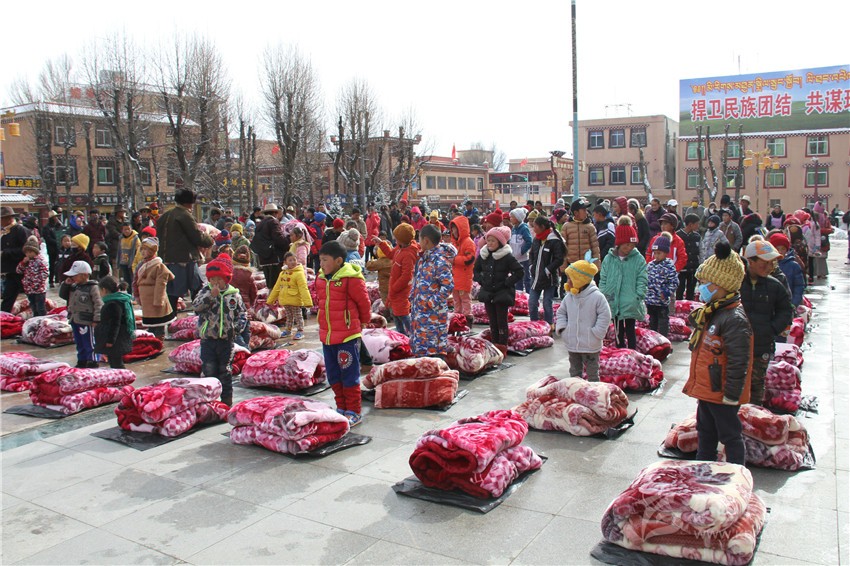 本網(wǎng)訊(葉強(qiáng)平 文/圖)元旦前夕,理塘縣關(guān)心下一代工作委員會(huì)在縣城格薩爾廣場舉行了“老少牽手·溫暖童心”暖冬行動(dòng),100名貧困學(xué)生領(lǐng)到爺爺、奶奶們捐贈(zèng)的“愛心”毛毯。