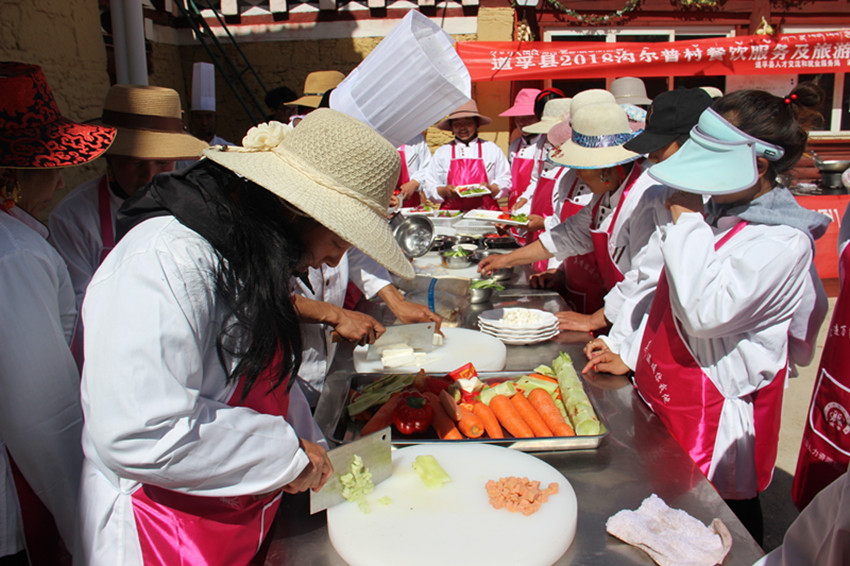 該村立足地處公路沿線的優(yōu)勢,緊抓成都師范學院幫扶機遇,在深入調(diào)研凍坡甲實際情況后,依托農(nóng)牧民夜校,層層選拔有意愿的村民開展旅游禮貌用語、儀容儀表及禮儀規(guī)矩等方面的培訓,村上成立了村舞蹈隊、合唱隊,去年村上舉辦了第一屆達瑪花節(jié),建成了村上的精品鄉(xiāng)村民宿,同時由村民所郎尼瑪收徒學習民居內(nèi)部裝飾,開辟了青年轉(zhuǎn)移就業(yè)的新途徑,每人月均可收入達1000余元,實現(xiàn)脫貧致富。