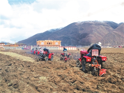 本網(wǎng)訊(唐書(shū)偉 攝影報(bào)道)正值春耕時(shí)節(jié),甘孜縣南多鄉(xiāng)非貧困村俄絨村的田地里機(jī)器轟鳴,新翻的泥土彌漫著濃濃的春意。在鄉(xiāng)黨委政府的帶領(lǐng)下,村民們忙著種植劍舌豌豆,一派忙碌景象。 據(jù)悉,甘孜縣黨委、政府在脫貧攻堅(jiān)工作中堅(jiān)持一個(gè)村都不拉下,不僅僅抓好今年退出村的產(chǎn)業(yè)發(fā)展,還為非貧困村爭(zhēng)取了近1000畝劍舌豌豆、紅豆草等種植項(xiàng)目。