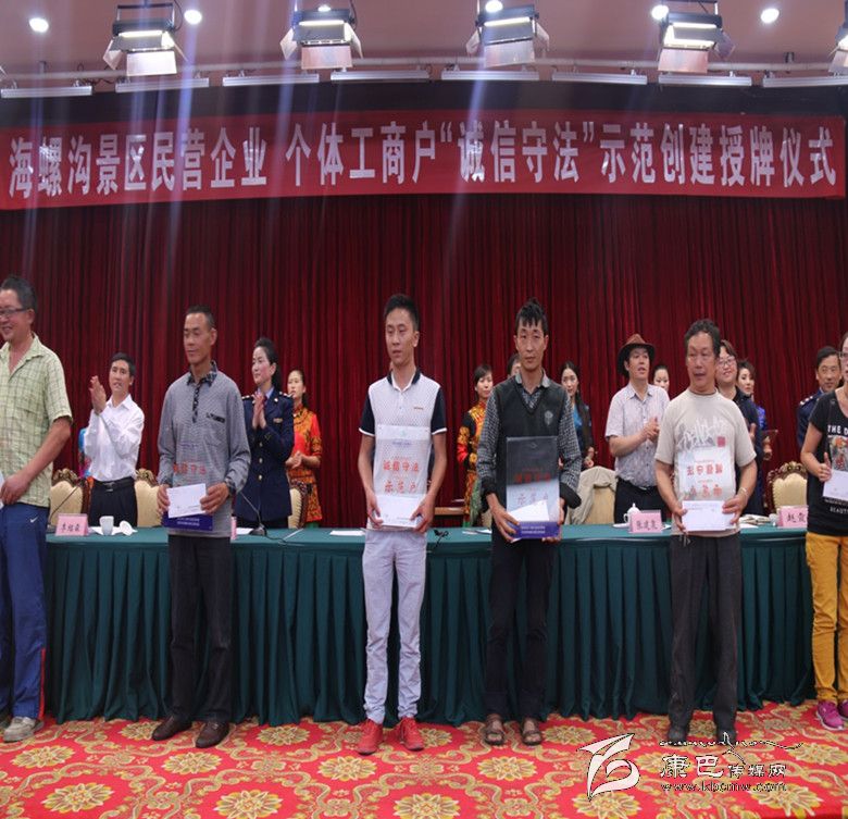 對公示無異議的178戶“誠信守法”示范創(chuàng)建戶命名授牌,由州工商局、海螺溝管理局授予甘孜州海螺溝景區(qū)"誠信守法示范戶",并頒發(fā)牌匾。 被授予“誠信守法示范戶” 178戶商家莊嚴宣誓:自愿申報成為“誠信守法”示范企業(yè)(個體工商戶),一定信守承諾、珍惜榮譽,將“誠信”作為立業(yè)、興業(yè)的基石和名片,崇尚法律、敬畏法律,依法經營。同時,在“誠信守法”示范創(chuàng)建承諾書上莊重地簽下自己的名字。