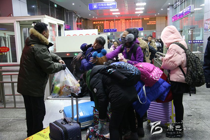 23日晚,康定下了一場鋪天蓋地的大雪,氣溫驟降,但這并沒有影響人們對回家的渴望。記者一進(jìn)汽車站就看見購票窗口、行李檢查口、車票驗核口井然有序的排滿了購票的旅客。