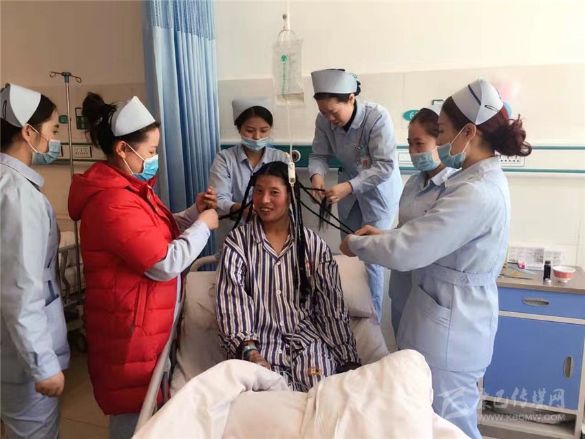 手術(shù)前,肝膽二科的護(hù)士們按照藏族習(xí)俗,為降東瑪編制吉祥發(fā)辮。