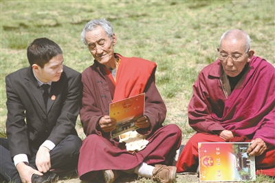 我州司法行政系統(tǒng)首創(chuàng)的“菜單式”普法深深吸引了農(nóng)牧民群眾。在農(nóng)牧區(qū),農(nóng)牧民群眾主動和司法局工作人員“對接”。印有“別人借了我的錢不還,我可以通過法院幫助要回嗎?”“出去打工時,公司讓交保證金怎么辦?”等法律問題的普法菜單在老百姓手中成為了熱議話題。”“以前遇到一些生活上的問題不知道怎么辦,現(xiàn)在政府給我們發(fā)了這樣的普法‘菜單’,我們可以根據(jù)自己想了解的內(nèi)容請工作人員進行解答?!苯?,爐霍縣宜木鄉(xiāng)村民尼瑪獲悉自己需要的法律知識,十分高興。