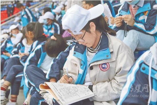早上7點30分左右,記者來到這片特殊的學(xué)生方陣時發(fā)現(xiàn),不少學(xué)生把課本帶去了現(xiàn)場,正趁著候場間隙埋頭苦讀。據(jù)康定中學(xué)老師李虓偉介紹,同學(xué)們是排練隊伍中進場時間最晚、排練時間最短的一個團隊,“在不耽誤課程的情況下,孩子們將所有能抽出來的時間全部奉獻給這次演出了,所以每次排演總是格外地認真,絲毫沒有怨言,為了節(jié)約時間,同學(xué)們還利用訓(xùn)練期間短暫的休息時間,埋頭溫習(xí)課本、做作業(yè)?!?/p>