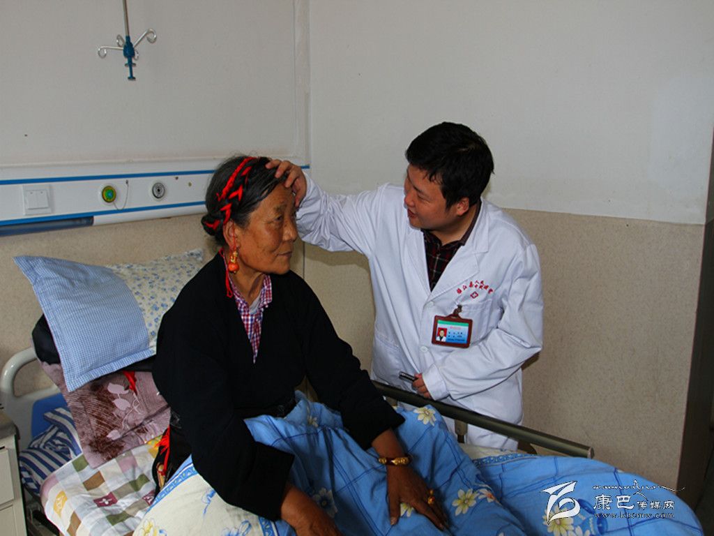 劉曦正在查看尼瑪視力恢復情況。